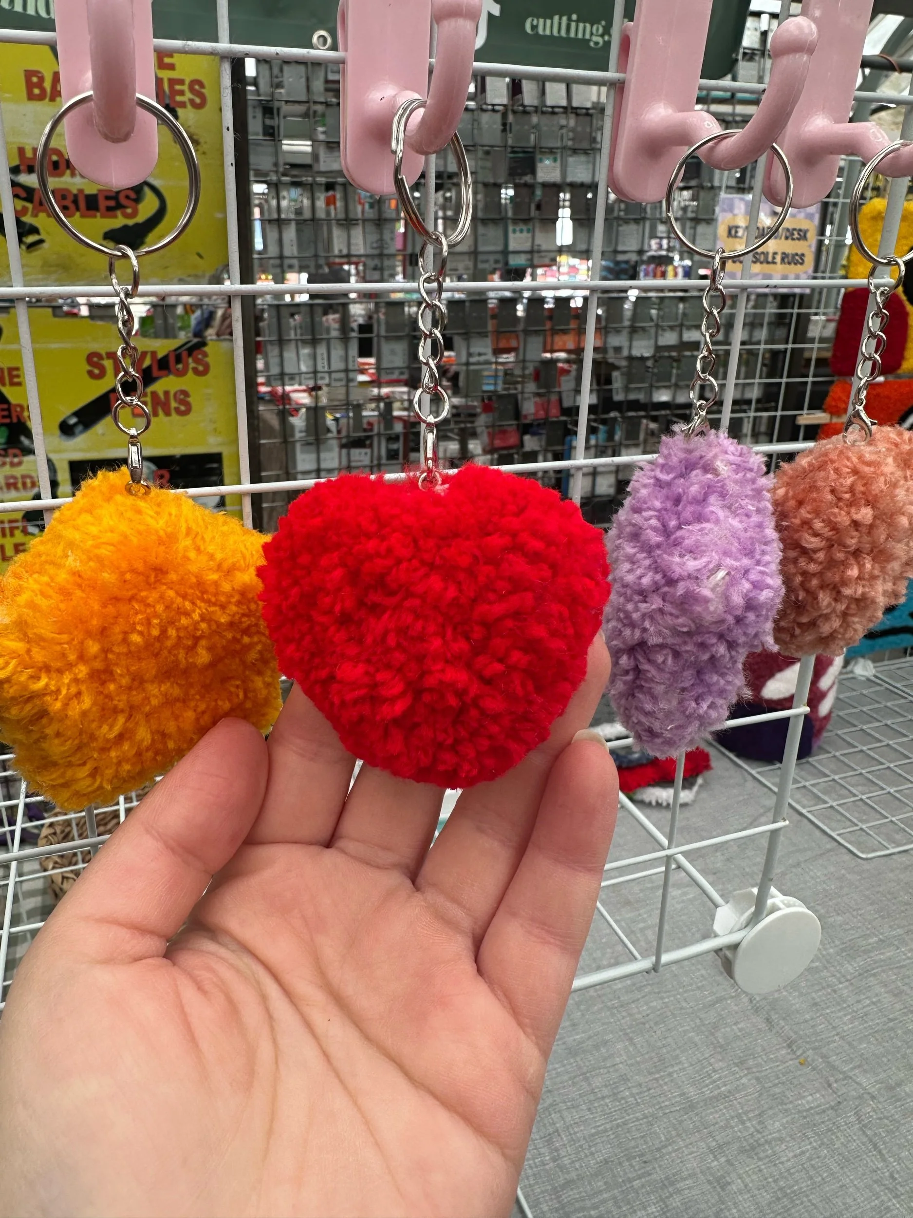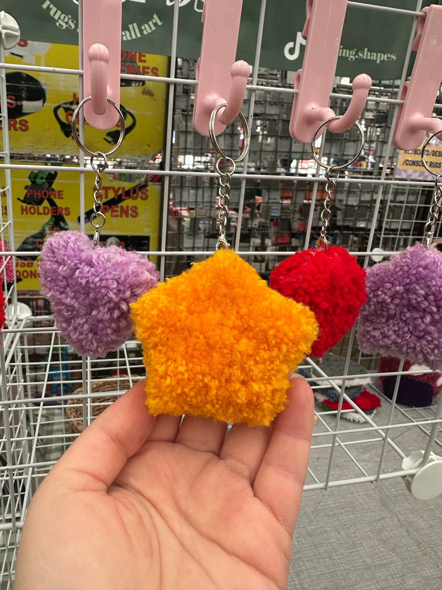 Take a mini rug with you on the go with these tufted keychains! Available in 2 designs and different colours. Roughly 4-6 cm wide and 4-7cm tall.